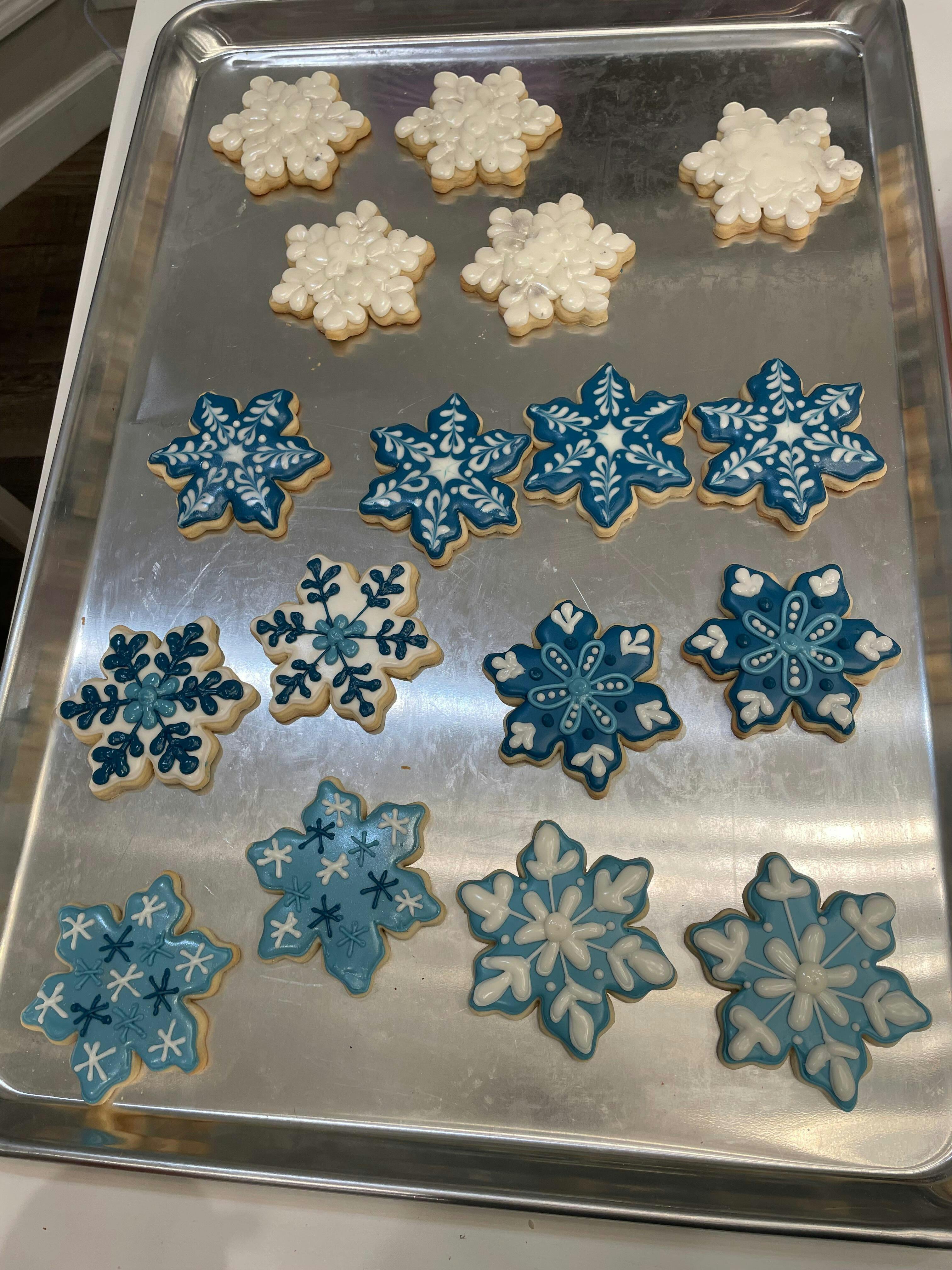 All of my cookie decorating classes include the same cookie and icing prep regardless of the skill level. While others differentiate skill level partly based on how much prep is provided, I provide the same prep regardless and differentiate skill level based on the techniques covered in the set and amount of decorations/tools required.