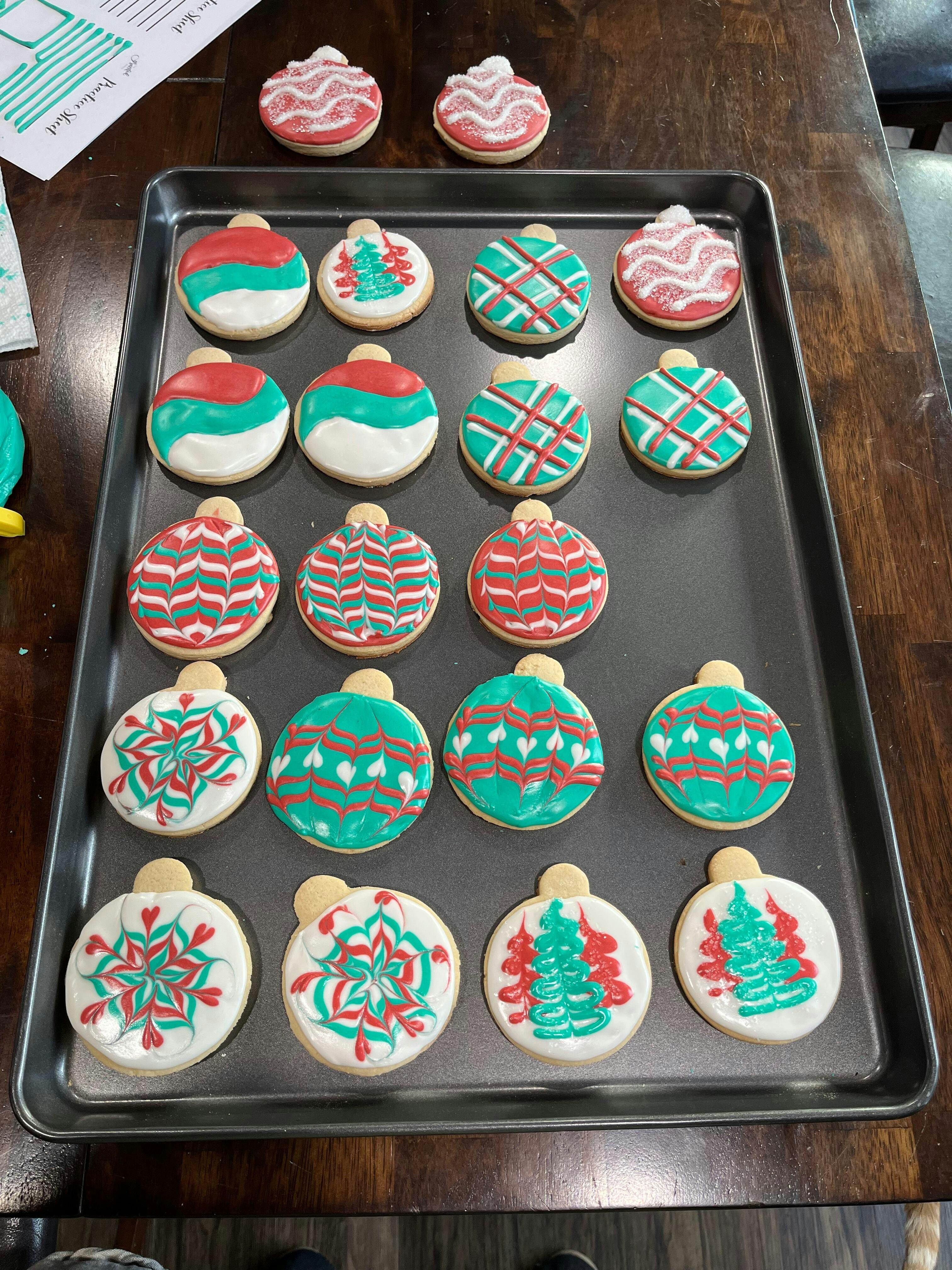 I’ve been following Grace for over a year on Instagram, and I decided to take advantage of her Black Friday sale on cookie decorating classes. I am an avid baker, but I had never decorated cookies, so I was a little intimidated. This was a first, and Grace made it easy-ish! The workbook was incredibly thorough, including links for supplies, recommended timelines, recipes, practice sheets and more. I used her cookie recipe, but I made them gluten free, and they were delicious. Even though I botched the icing the first time, the cookies came out great! They came out even better the second time when I correctly made the icing using her standard lemon recipe, which I loved. I have some work to do on my icing consistency and decorating skills, but I’ve learned a lot, and I had so much fun decorating cookies with friends. I’ve even purchased two more classes! Thank you, Grace, for making this class so accessible. I love that you can go right to each cookie design on the video as you decorate.