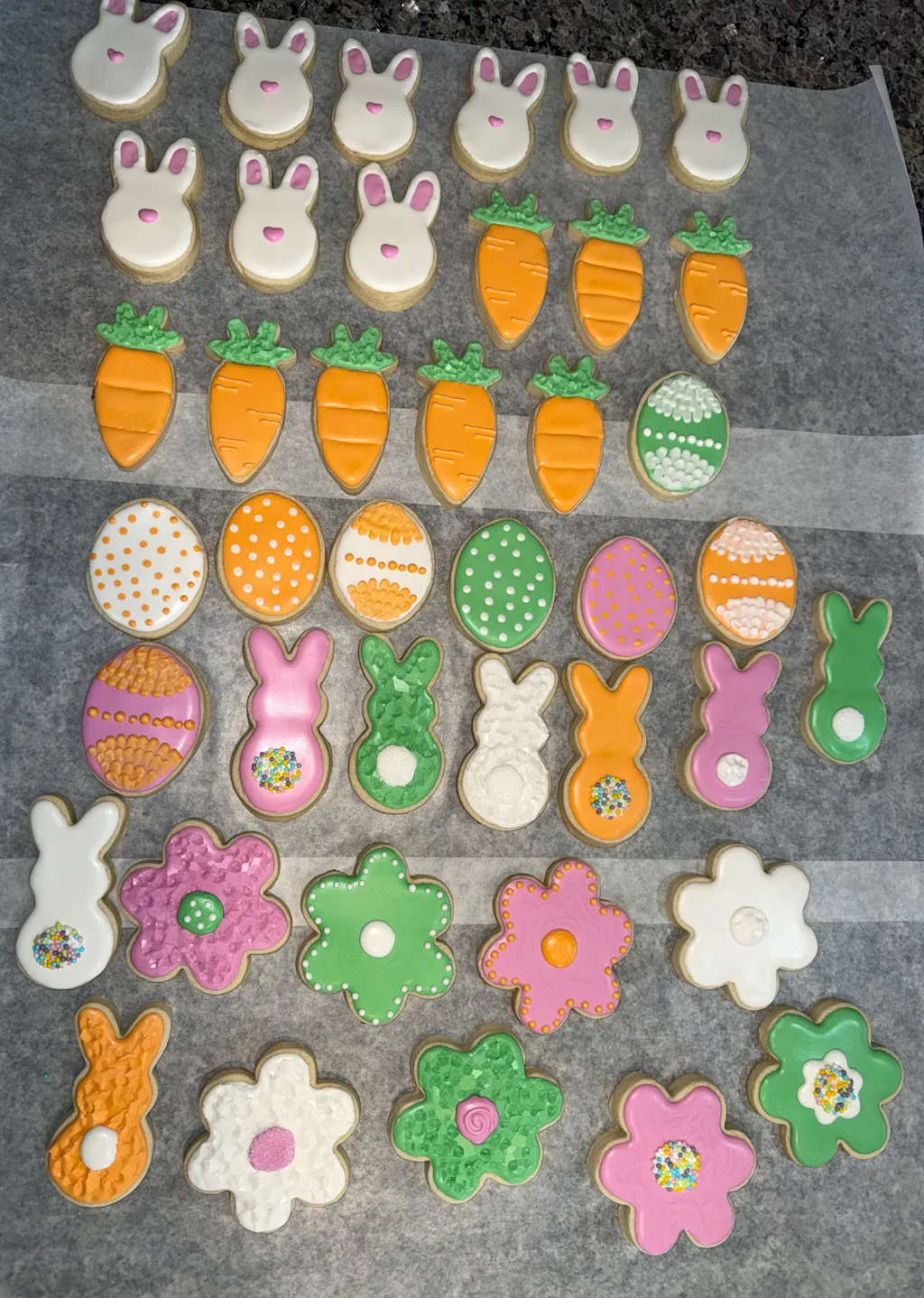 All of my cookie decorating classes include the same cookie and icing prep regardless of the skill level. While others differentiate skill level partly based on how much prep is provided, I provide the same prep regardless and differentiate skill level based on the techniques covered in the set and amount of decorations/tools required.