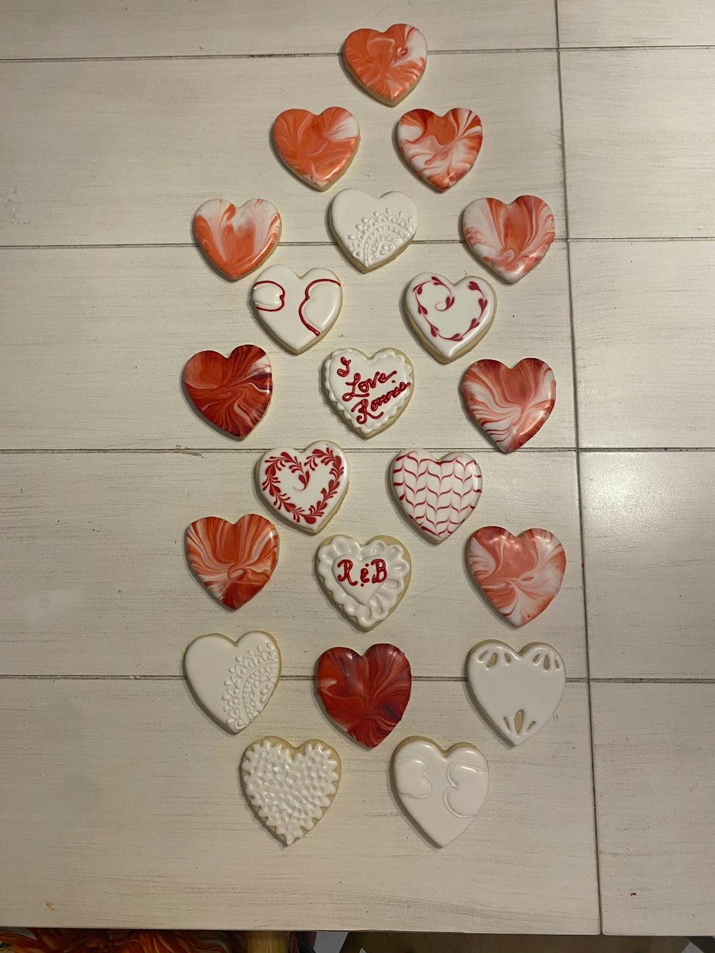 I took White Hearts Advanced Beginner online cookie class and it was such a great experience. I’m a beginner, but the instructions were clear, well-paced, and easy to follow. I prepped everything ahead of time using the class directions, and on a Sunday we sat at the kitchen table together with a bottle of Prosecco while we watched the videos. My husband even decorated cookies with me, and we had so much fun making a day of it. I learned a lot and ended up with some really pretty cookies. I’d absolutely recommend this class. I used the BLUE icing I already had made and practiced with it.