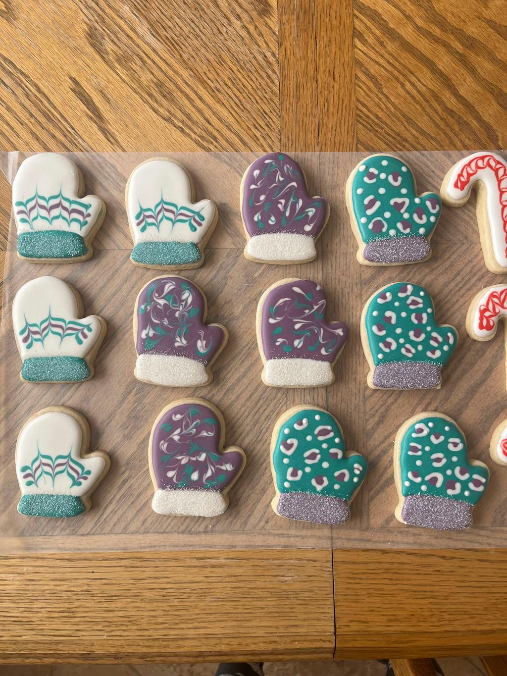 This was my first set of the mitten cookies. I have a long way to go to be like Grace, but we all had to start somewhere. LOL! I accidentally at a cookie before taking the pic of one of them. They tasted amazing. I'm looking for a butter flavored royal icing for this white don't like lemon. I have some butter emulsion.