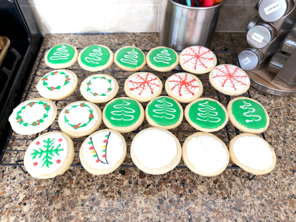 All of my cookie decorating classes include the same cookie and icing prep regardless of the skill level. While others differentiate skill level partly based on how much prep is provided, I provide the same prep regardless and differentiate skill level based on the techniques covered in the set and amount of decorations/tools required.