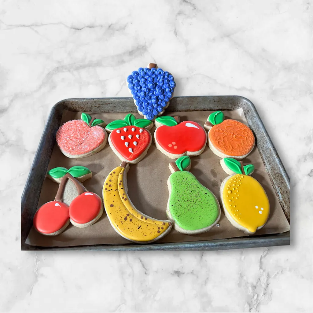 Put your decorating skills to the test with our TUTTI FRUTTI Online Cookie Decorating Class! Learn to craft vibrant and delicious fruit cookies.